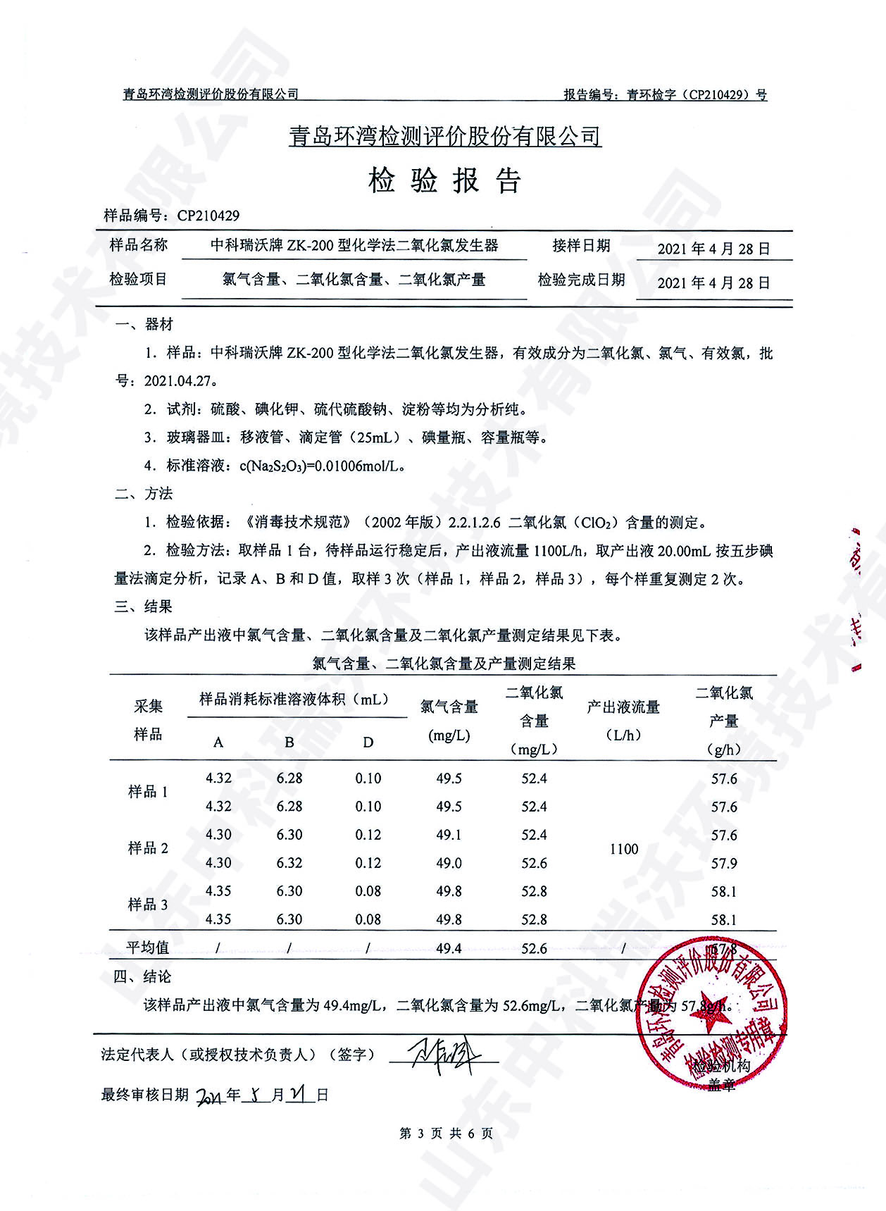 醫(yī)療污水處理設備檢測報告~二氧化氯消毒
