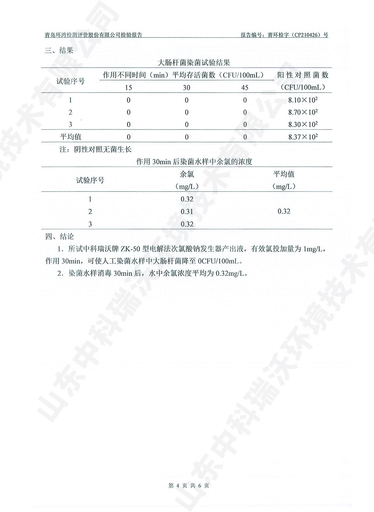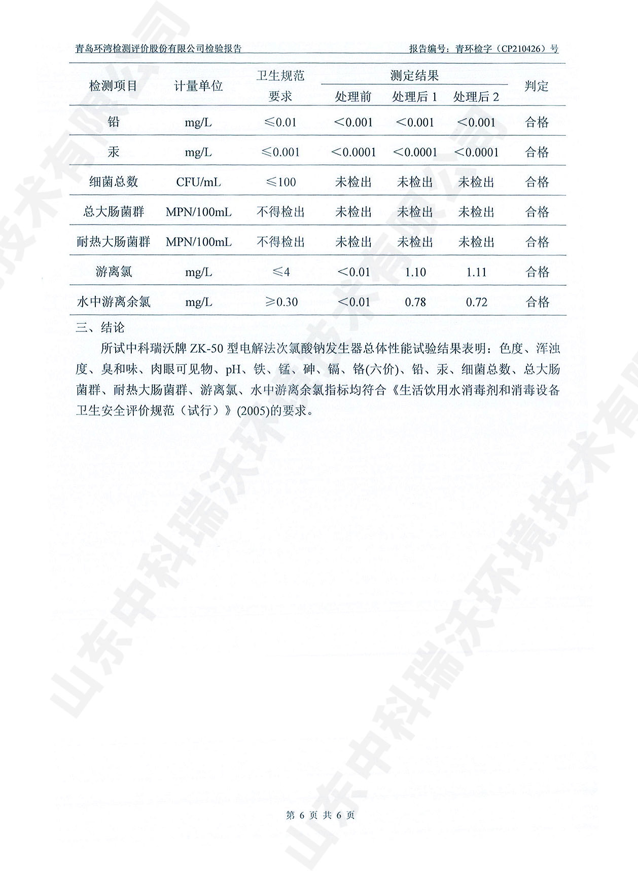 飲水消毒設(shè)備檢測(cè)報(bào)告~次氯酸鈉消毒