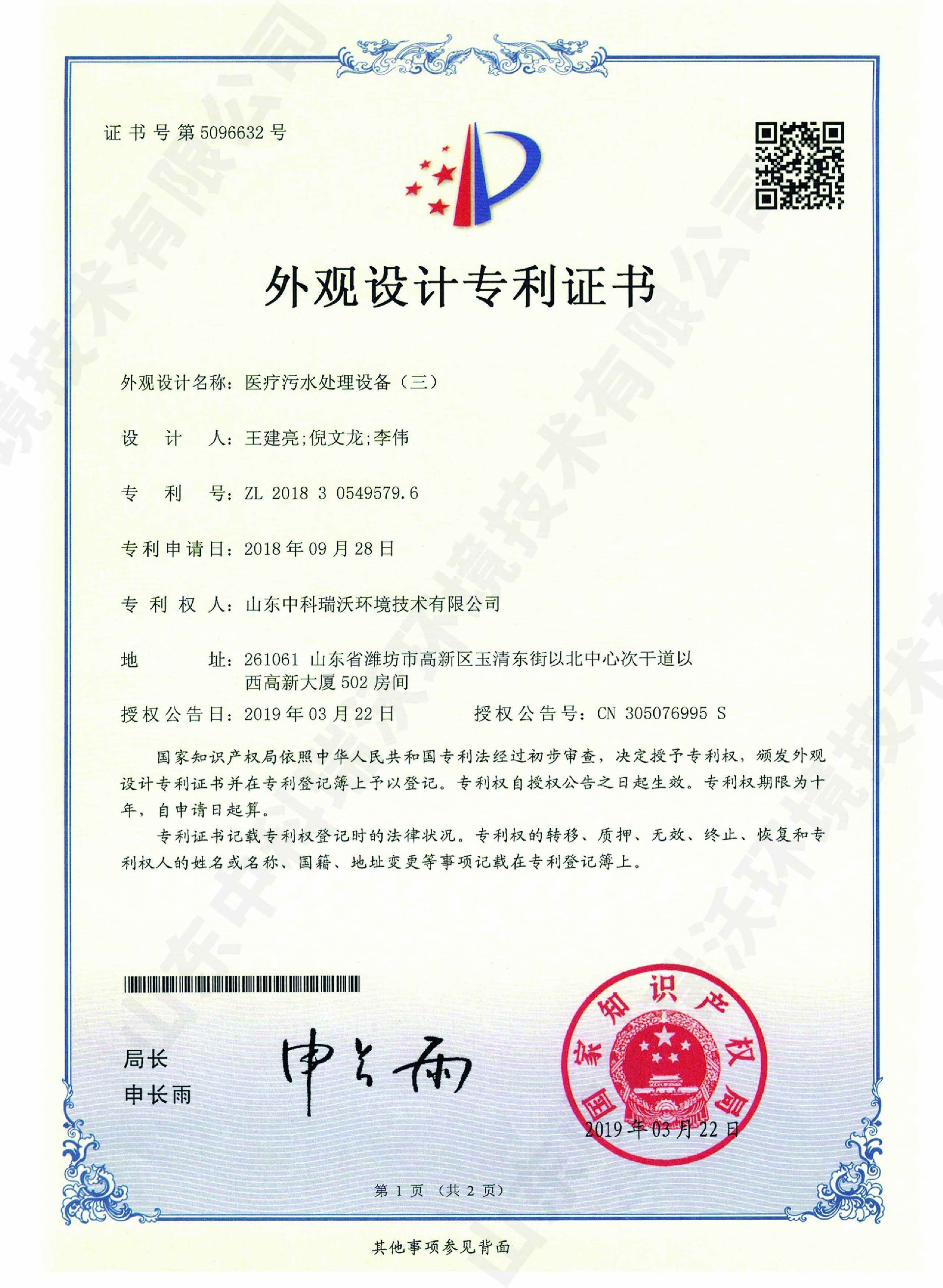 實驗室污水處理設備~外觀專利